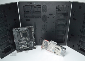 Das Thermaltake Core P7 ist prädestiniert für den Bau einer Custom-Wasserkühlung und die beiden Flügelmodule sind genau hierfür konzipiert. Beide Module können Radiatoren bis zu einer Länge von 420 bzw. 480 mm samt Ausgleichsbehälter und Pumpe aufnehmen, wodurch getrennte Kreisläufe für CPU und Grafikkarte spielend bewerkstelligt werden können.