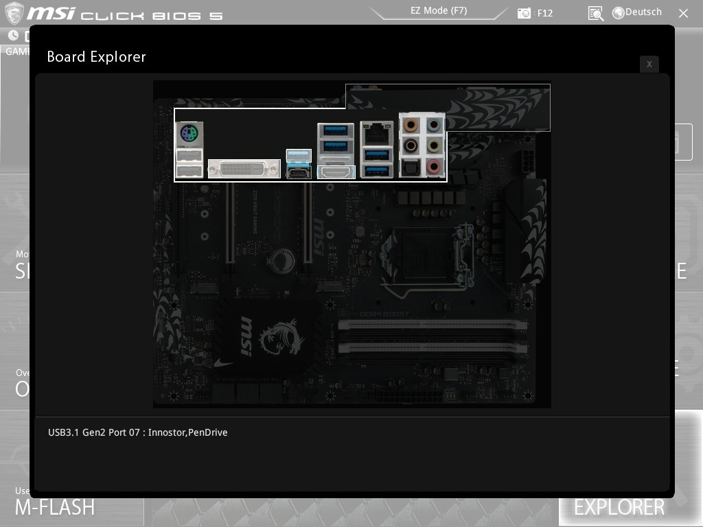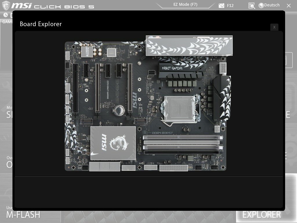 Ein nettes Gimmick ist der „Board Explorer“ im BIOS, der Position und Status der einzelnen Komponenten des Boards darstellt.