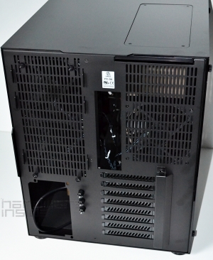 - Lüfter insgesamt möglich: 3x 120 mm (Vorderseite, rechter Bereich) 2x 120 mm (HDD-Käfig, rechter Bereich) 2x 120 mm (Deckel, linker Bereich) 1x 120 mm (Rückseite, linker Bereich)