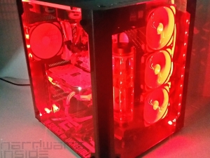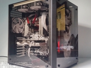 Das Lian Li PC-O8WX ist komplett aus Aluminium gefertigter Cube, dessen linkes Seitenteil sowie die Vorderseite komplett aus Hartglasplatten bestehen. Selbst die LED-Innenbeleuchtung sorgt in diesem Gehäuse für einen atemberaubenden Look und lässt das Gehäuse innere erstrahlen. Das Gehäuse überzeugt nicht nur durch seine Äußerlichkeiten, sondern ist dank Unterstützung für ATX- oder sogar E-ATX-Mainboards bis 272 mm Breite auch bestens für sehr leistungsstarke Komponenten geeignet.