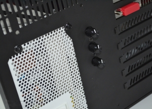 Die LED-Beleuchtung lässt sich im übrigen in sämtliche Farben ändern. Hierzu verwendet man einfach die drei vorhandenen Drehrädchen, welche sich auf der Rückseite des Gehäuses befinden.